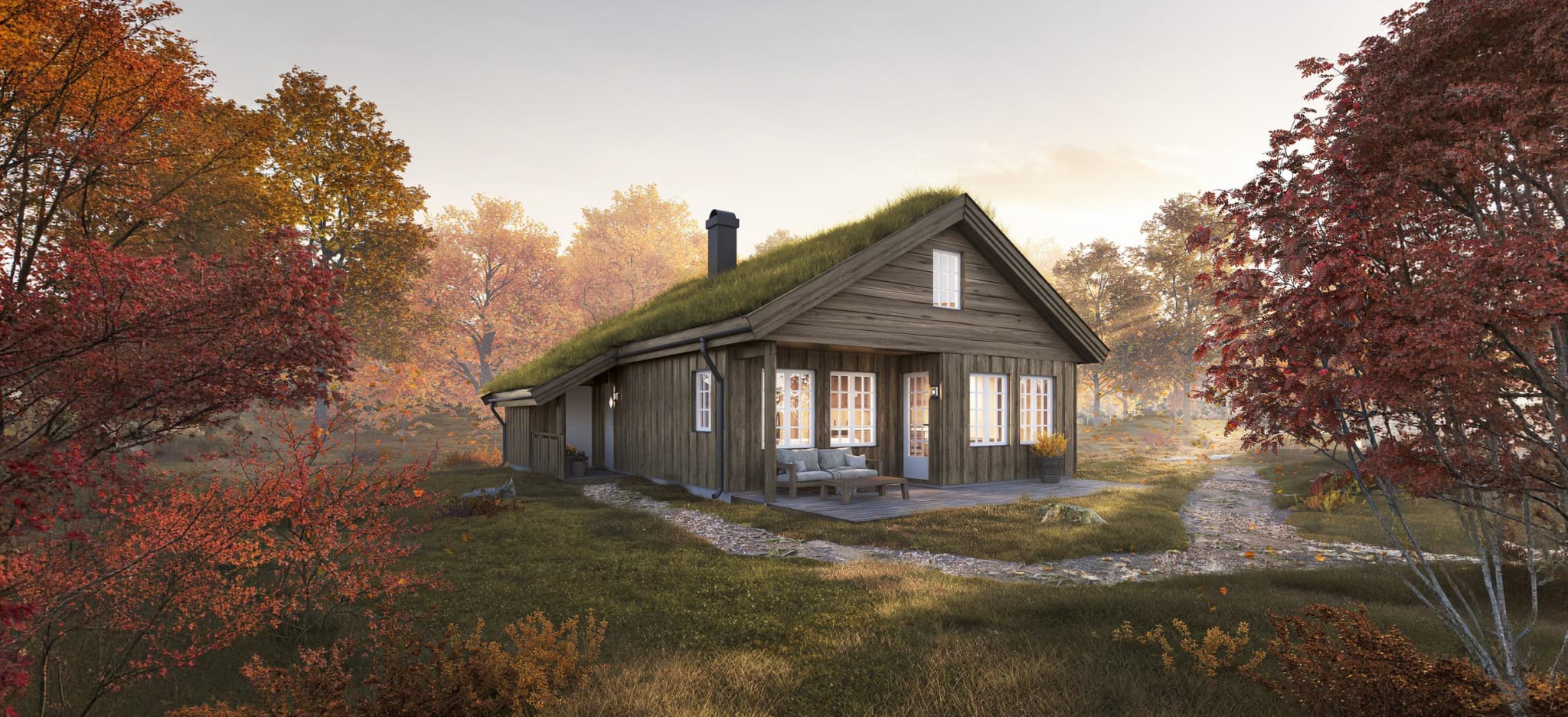 Begge kan leveres med torvtak. Som nøkkelferdig leveres hytta komplett med kjøkkeninnredning og hvitevarer, peisovn med stålpipe i stua, flislagte vegger og gulv i bad, samt gulvvarme i entré og bad.