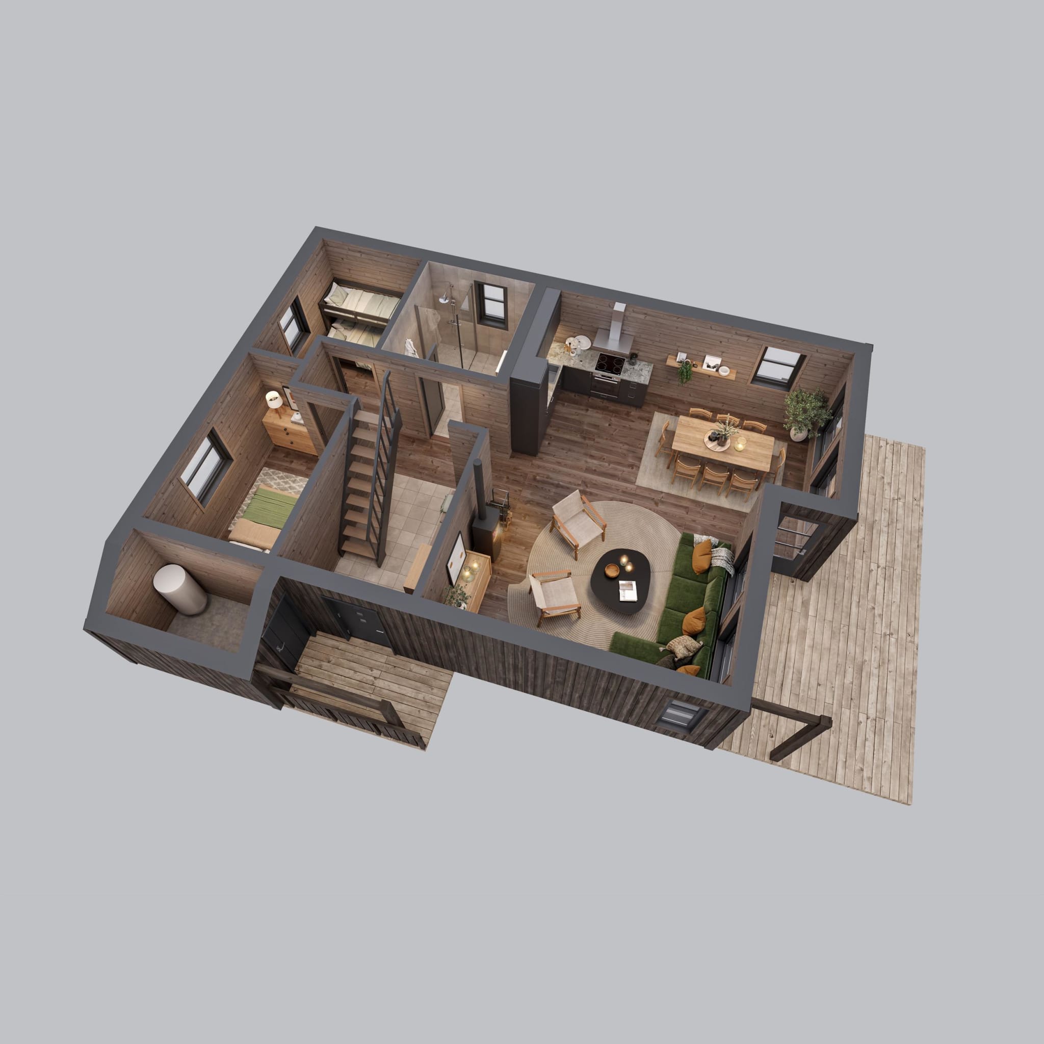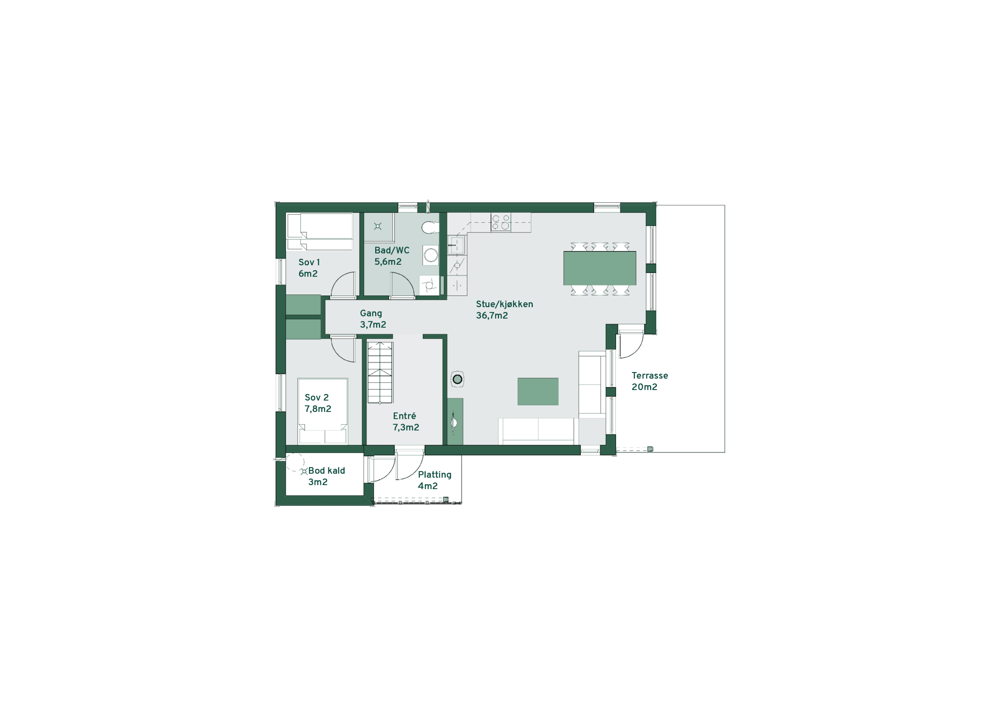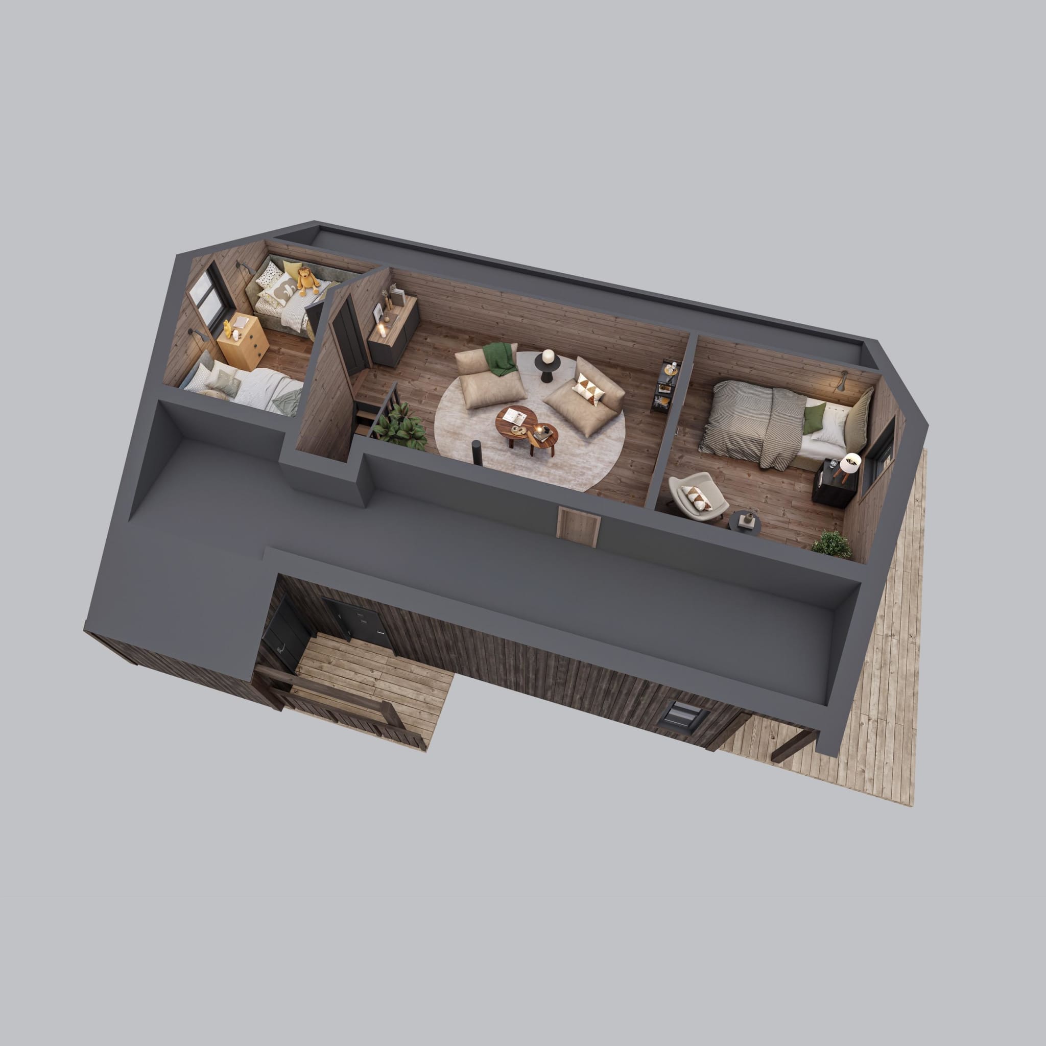 Furutangen 75 kombinerer varme materialer med en klar og oversiktlig planløsning. Hovedplanet har gode rom, mens hemsen gir ekstra areal som mange setter pris på. En trygg og prisgunstig modell som passer i de fleste hyttefelt.