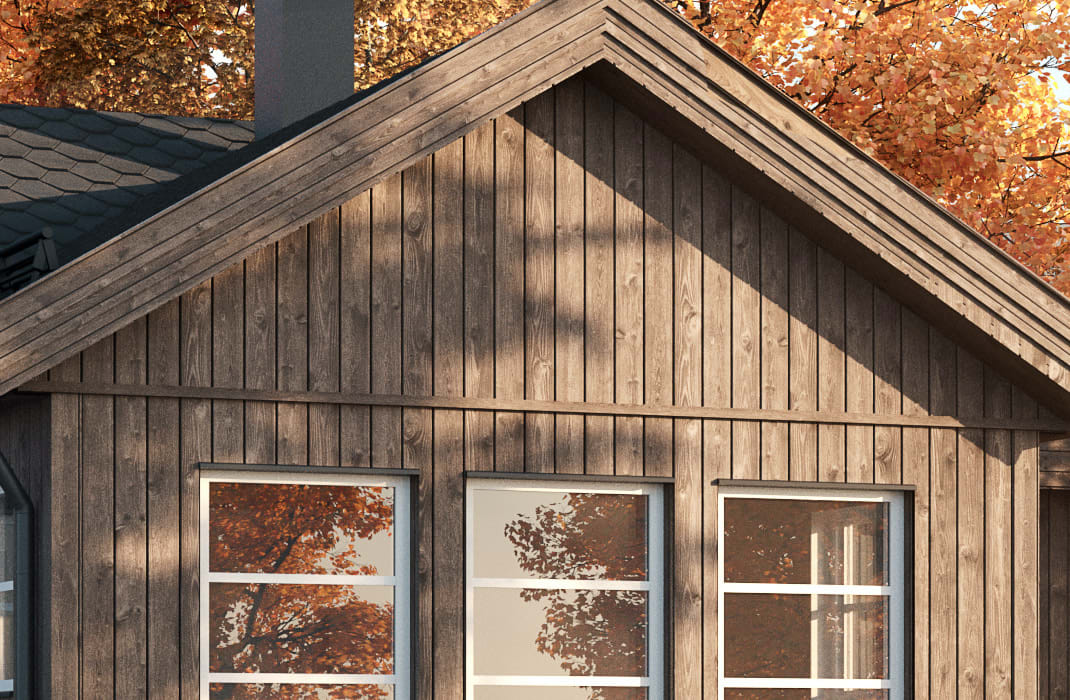 Leveres ubehandlet låve skrå panel – Ønsker man utvendig fargebehandlig kan dette fås mot et pristillegg i utførelsen Ultimalt transperent i våre utvalgte farger.