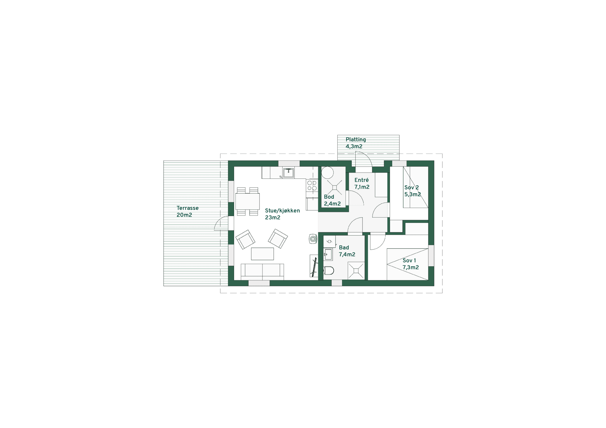 En trygg og prisgunstig modell som passer godt for familier som ønsker sitt første fristed med gode rammer.