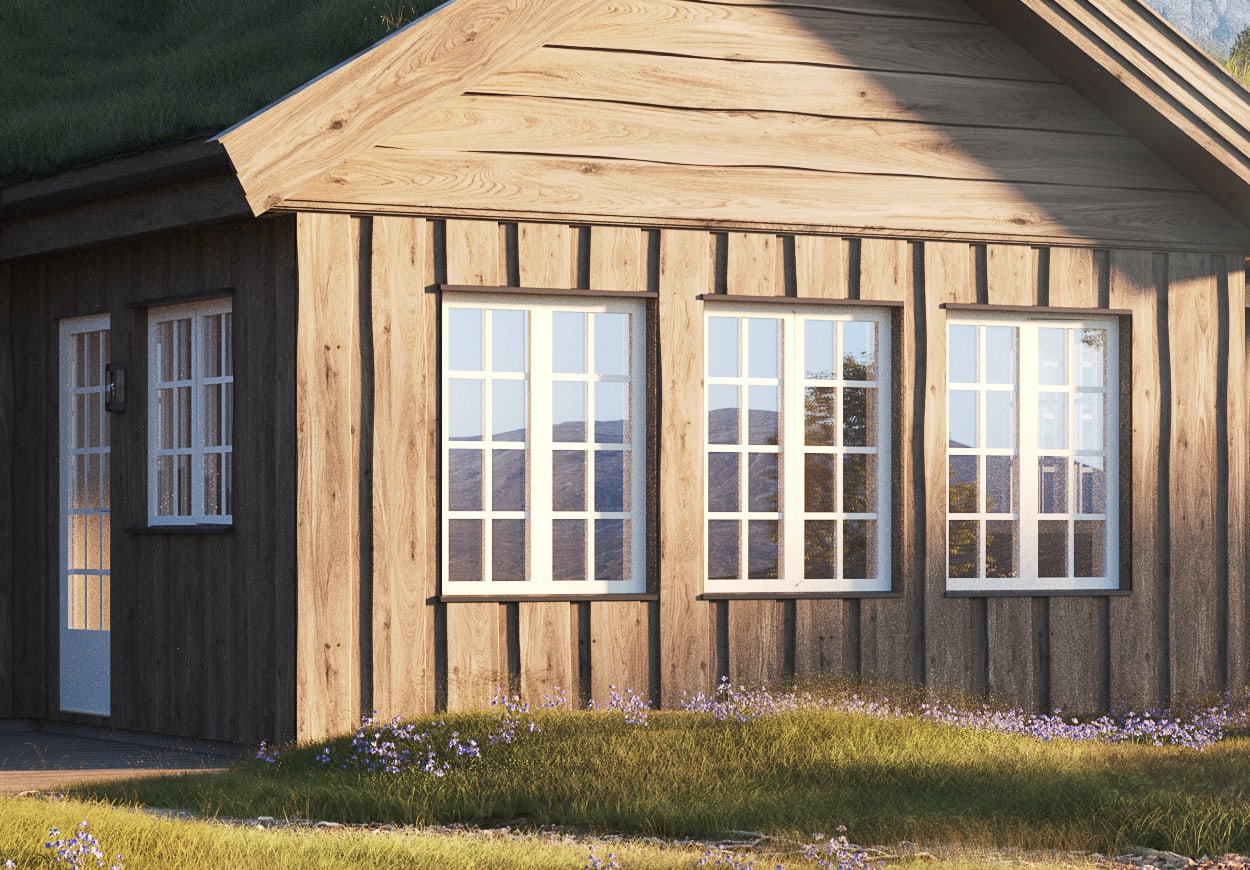 Smårutet tradisjonelt vindu med avtagbare sprosser.