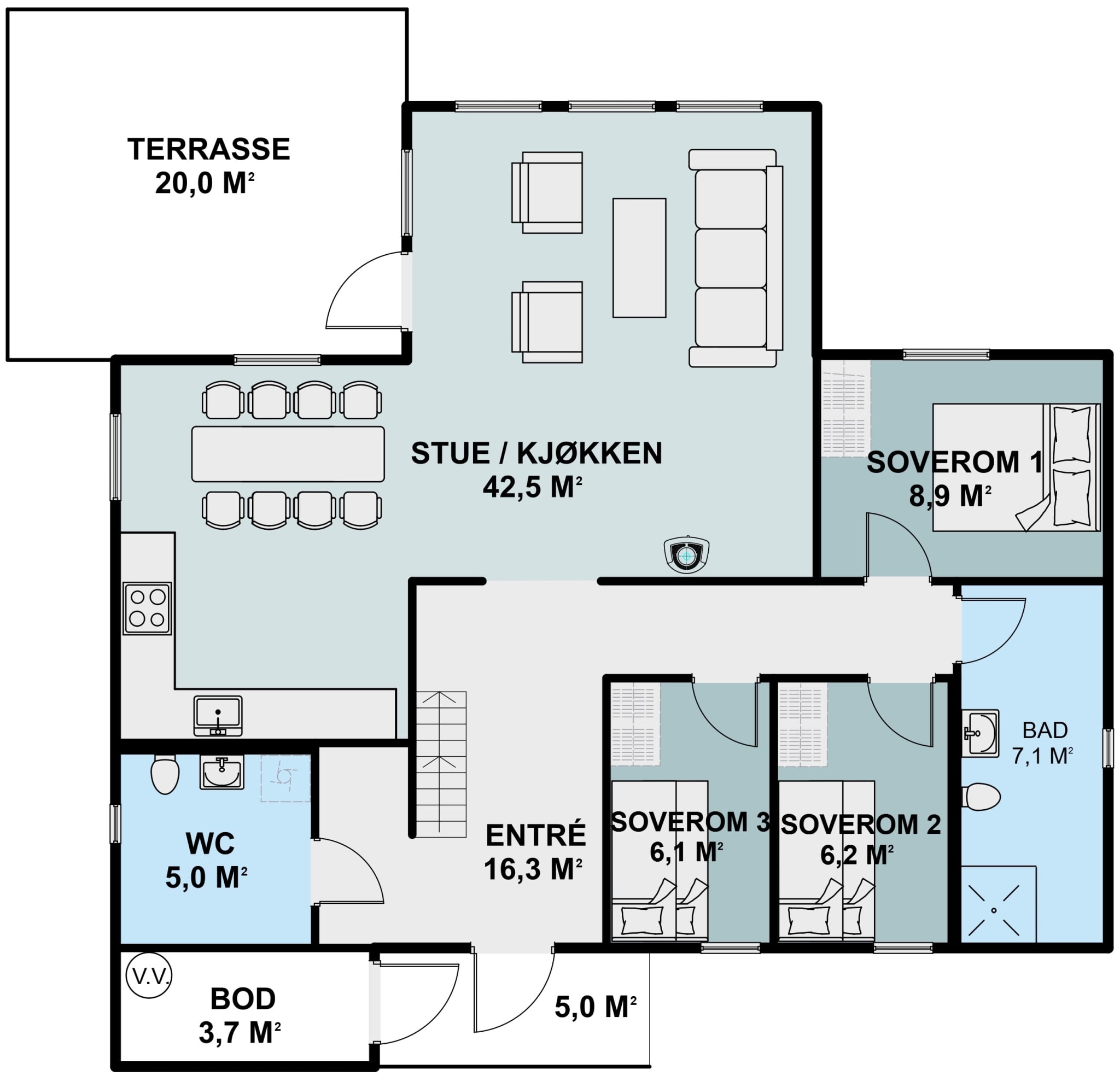 Alle hyttemodeller kan speilvendes. I tillegg har man mulighet til å speilvende halve hytta om dette er ønskelig med hensyn til solforhold og adkomst.