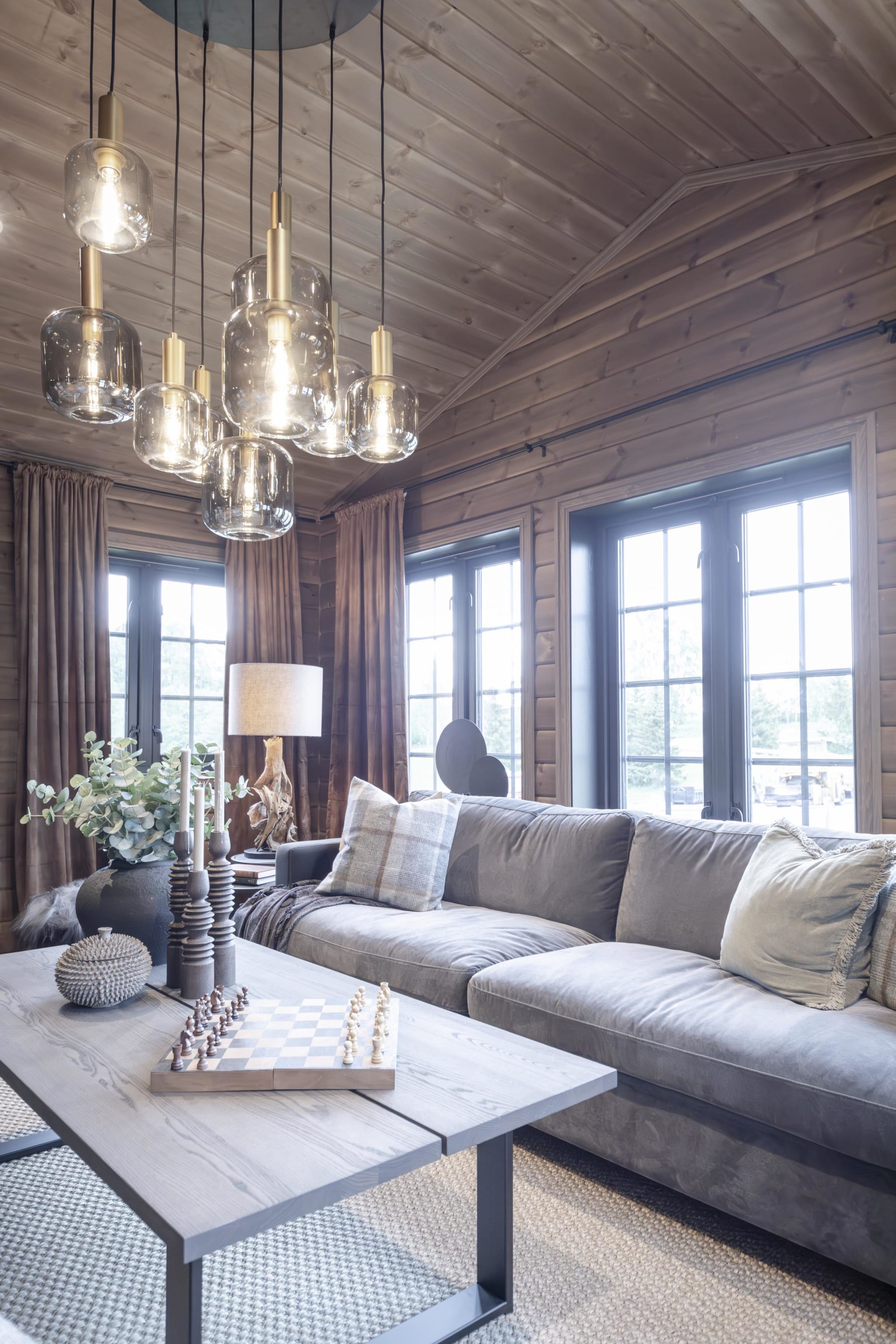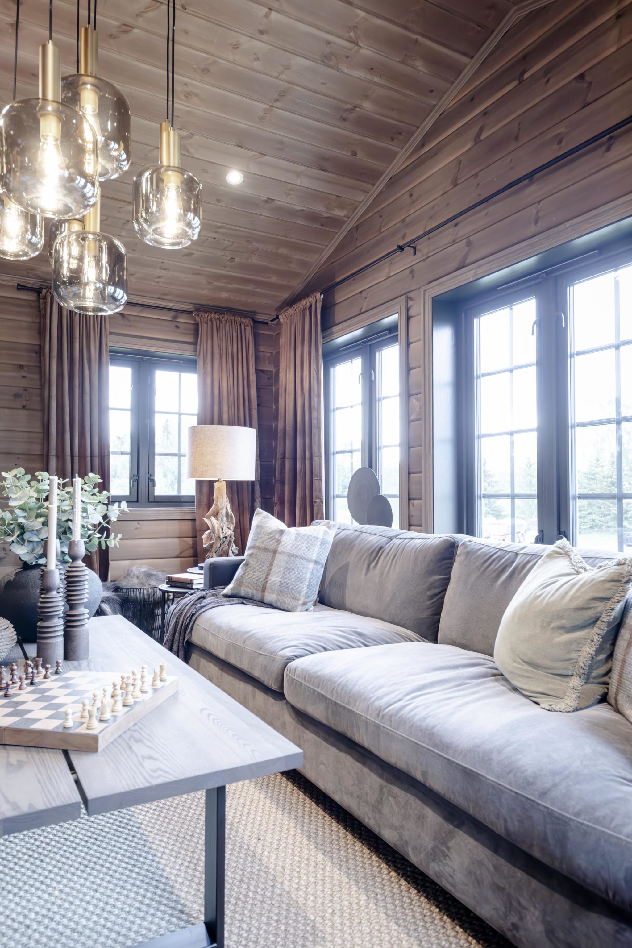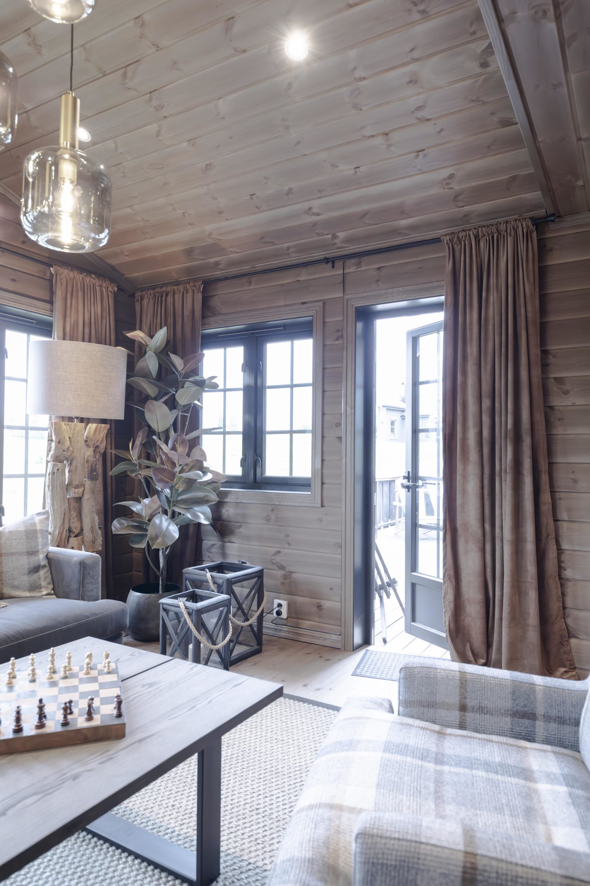 Hytta har et stort og luftig allrom der stue og kjøkken samles i en åpen løsning som skaper en sosial og innbydende atmosfære. Den store spiseplassen, den gode sofasonen og utgangen til terrassen gjør rommet perfekt for både familietid og hyggelige kvelder med venner. Store vindusflater slipper inn mye naturlig lys.